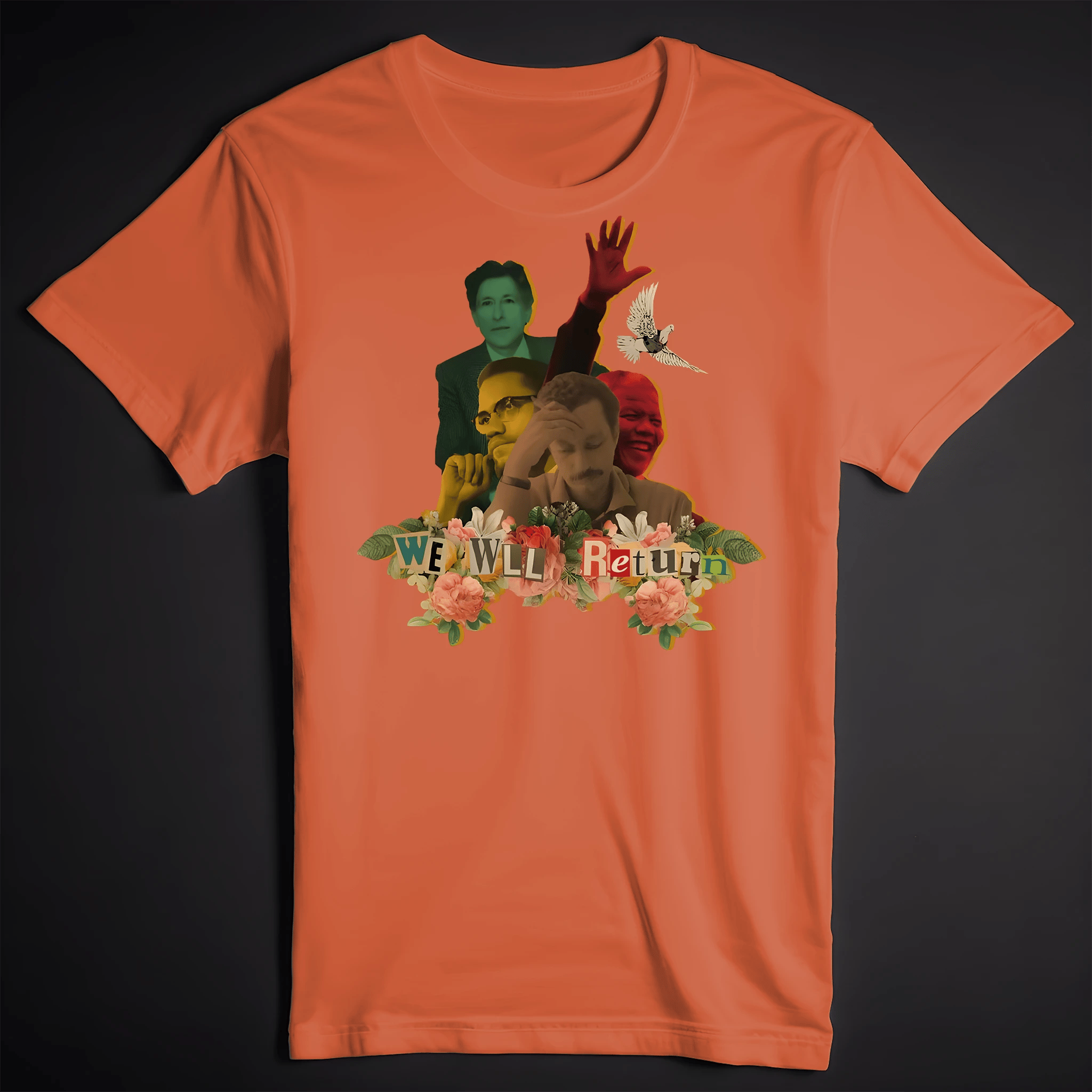 A Vibrant T-Shirt featuring prominent figures that spoke of freedom, liberty and resistance.